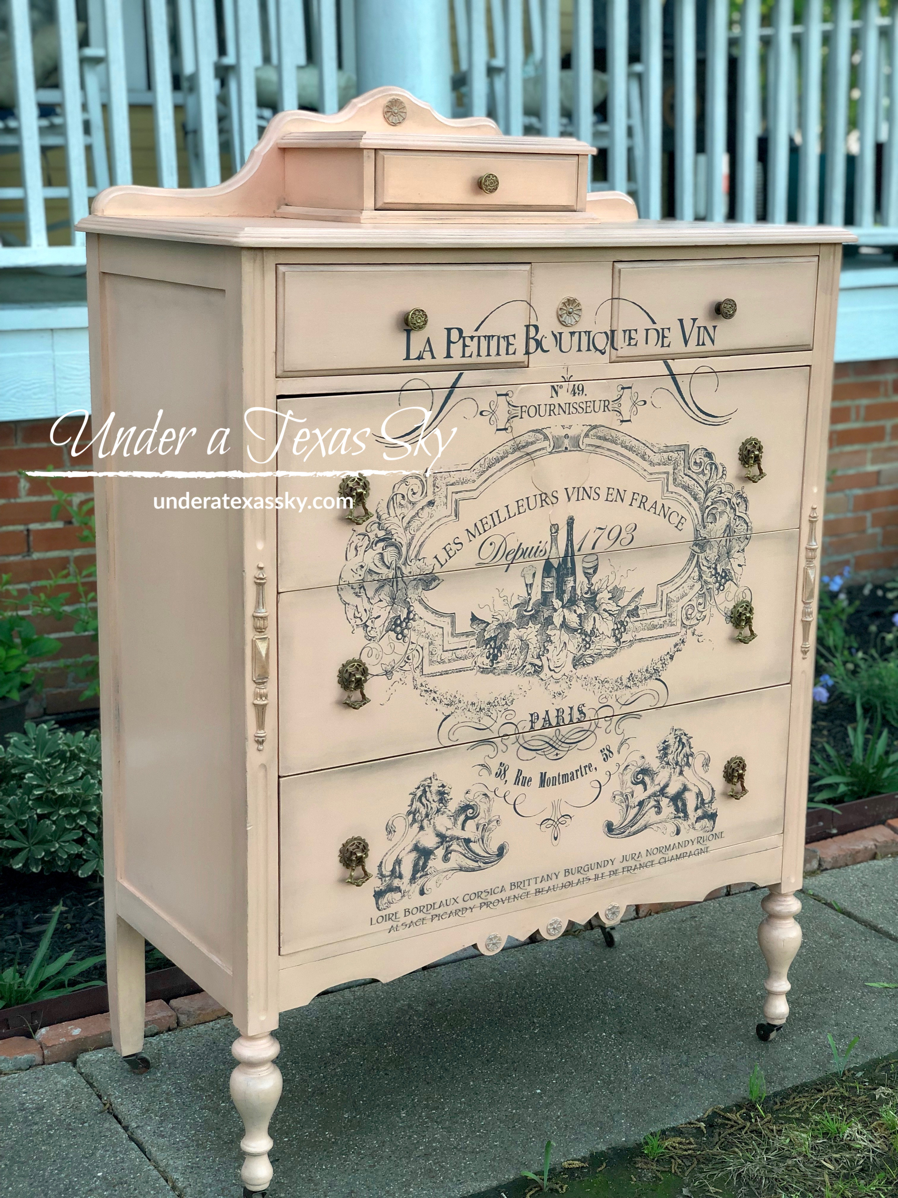Cheryl- Trust me, I know how intimidating it can be to start a project! I’m a little anxious with every new project. I have a huge secretary with hutch that I’m just waiting to tackle. I love using transfers on my projects also! It just adds such a cool finishing touch. And Dixie Belle products are so amazing- the entire line! I love that it’s a one stop shop for everything. And as far as wax… the great thing about Dixie Belle Waxes are they are water based. I use them mostly to add depth or age. Then it’s fine to put the clear coat right over the top of it. Of course you can always just wax as a final step since Dixie Belle Paints don’t really even need a top coat since they cure in 30 days to a nice hard finish. It’s so versatile!! If you ever have any questions, I’ll do my best to answer them for you. Blessings from one Texas girl to another. -Kelly