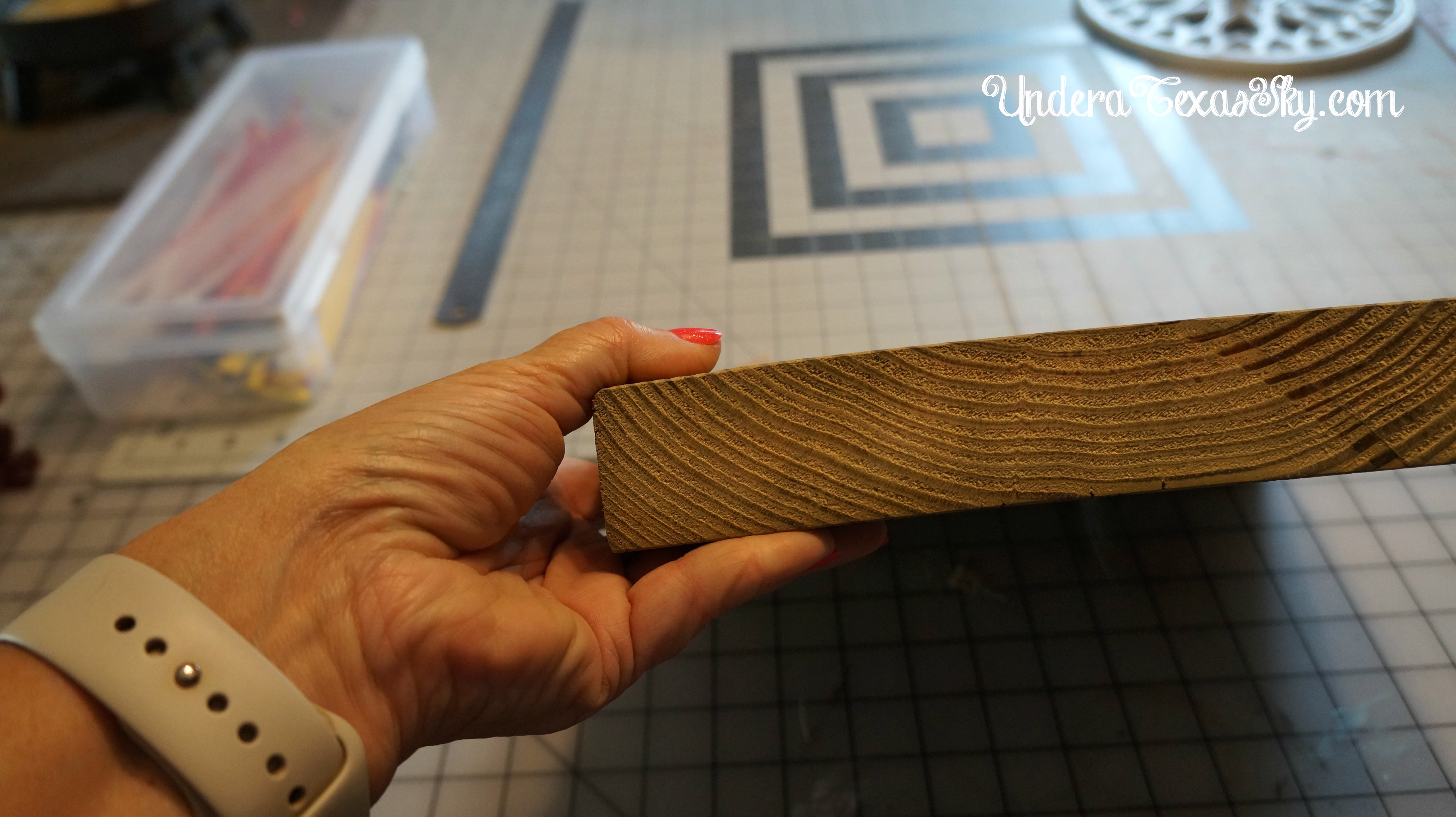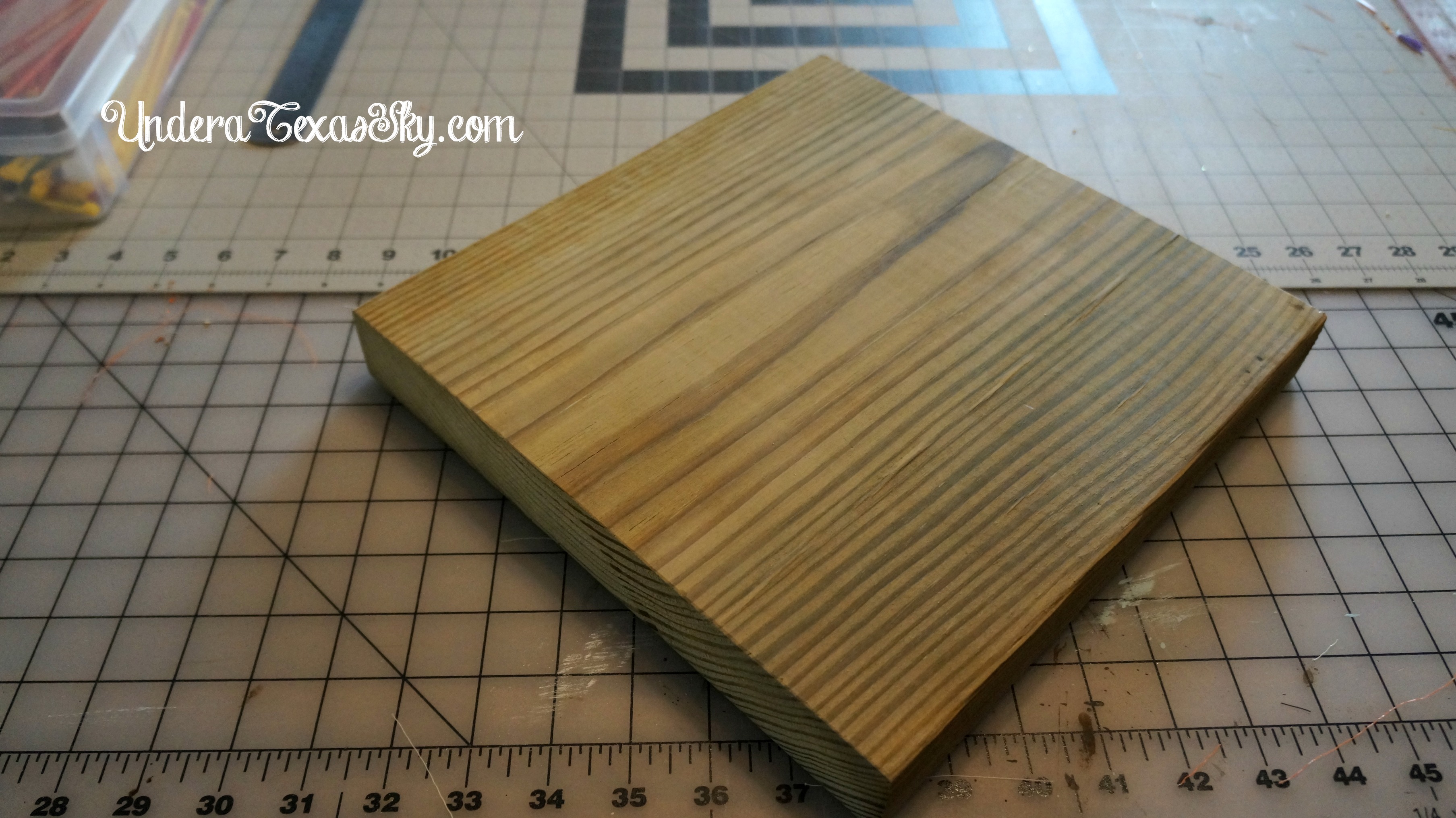 Anyway, I digress. You’ll need a 2ish x 12ish board cut to whatever height you want. I’m all about symmetry so I chose a board that’s roughly 11 inches square. Now the board I chose is an exterior grade wood not interior. I did not let this stop me. I just sanded it really well. All sides and surfaces should be smooth.