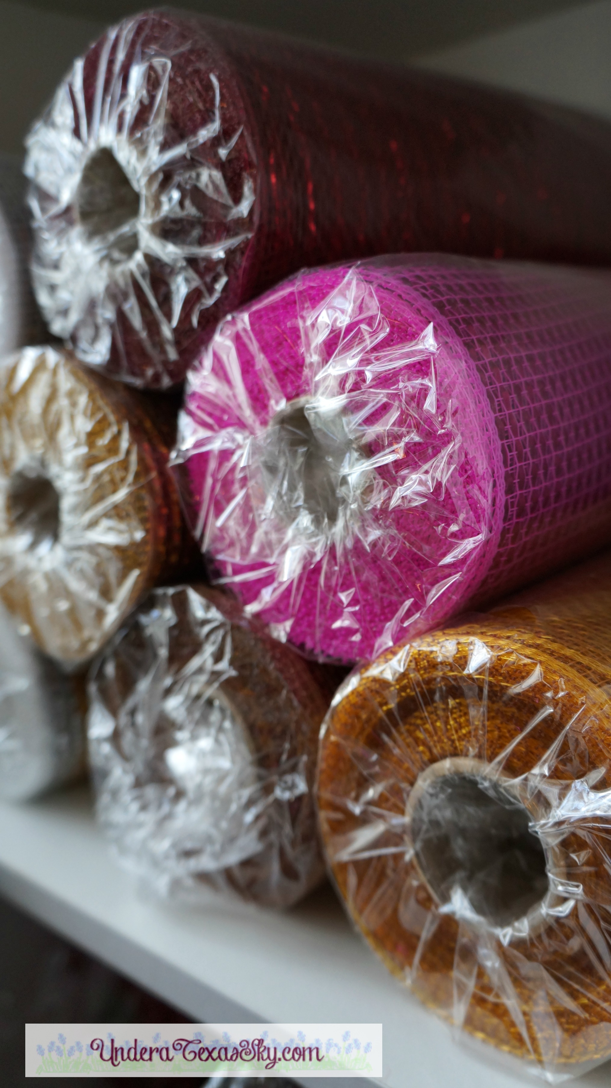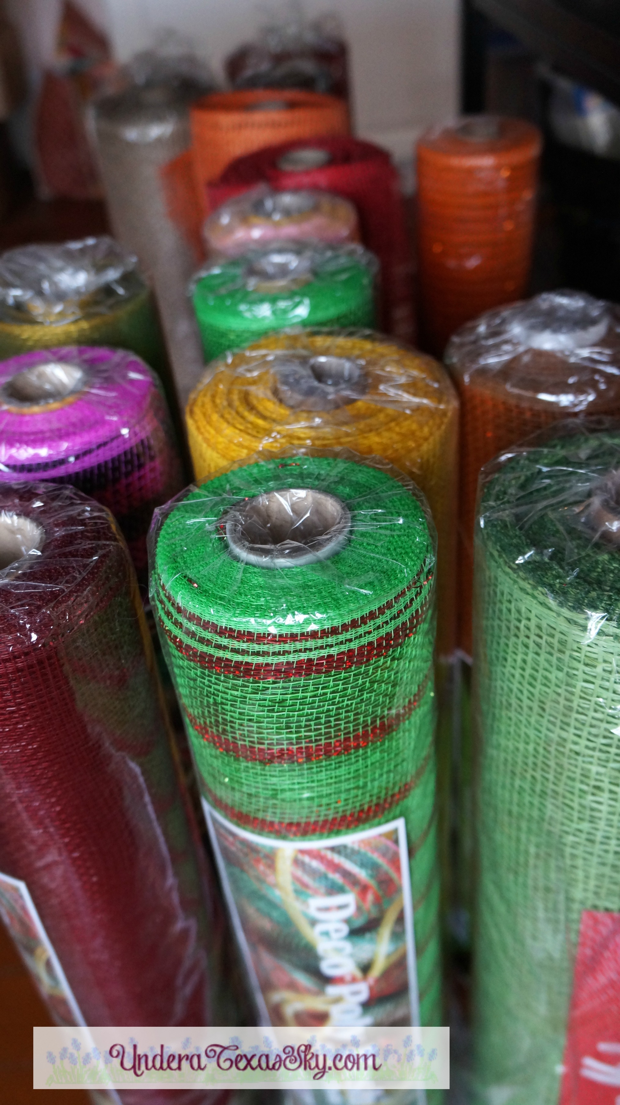 I love using storage cubbies. The closet cubbie works great to store 10″ rolls of deco mesh. You can also use the little drawers that fit in each space. There is a ton of room for any think you can stack. It’s amazing the amount of stuff you can store in these things!
