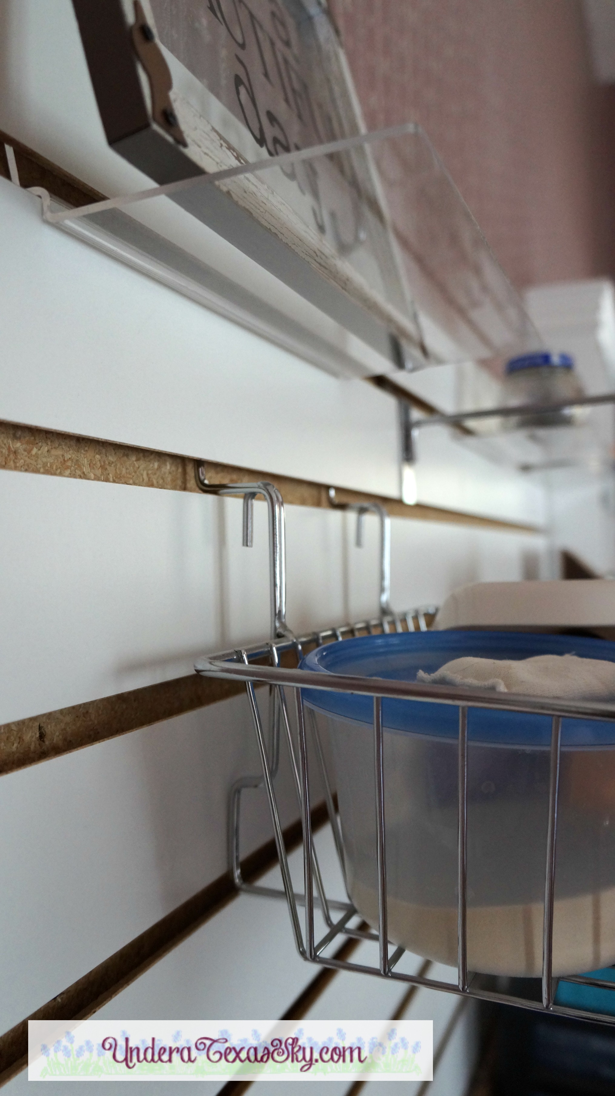 Wall storage is a must if you want to maximize your space. There are a couple of ways to go here. Our choice was to use grid panels and slat walls. These are fairly inexpensive and provide a ton of storage. You’ll need to buy the accessories; hooks, baskets, and such. For the grid panels, you’ll also need to get the wall hanging brackets to mount them. The slat walls just screw directly into the walls. We used these exact panels and walls from our other house. When it was time to move, we just unscrewed everything, wrapped, and packed it all up.