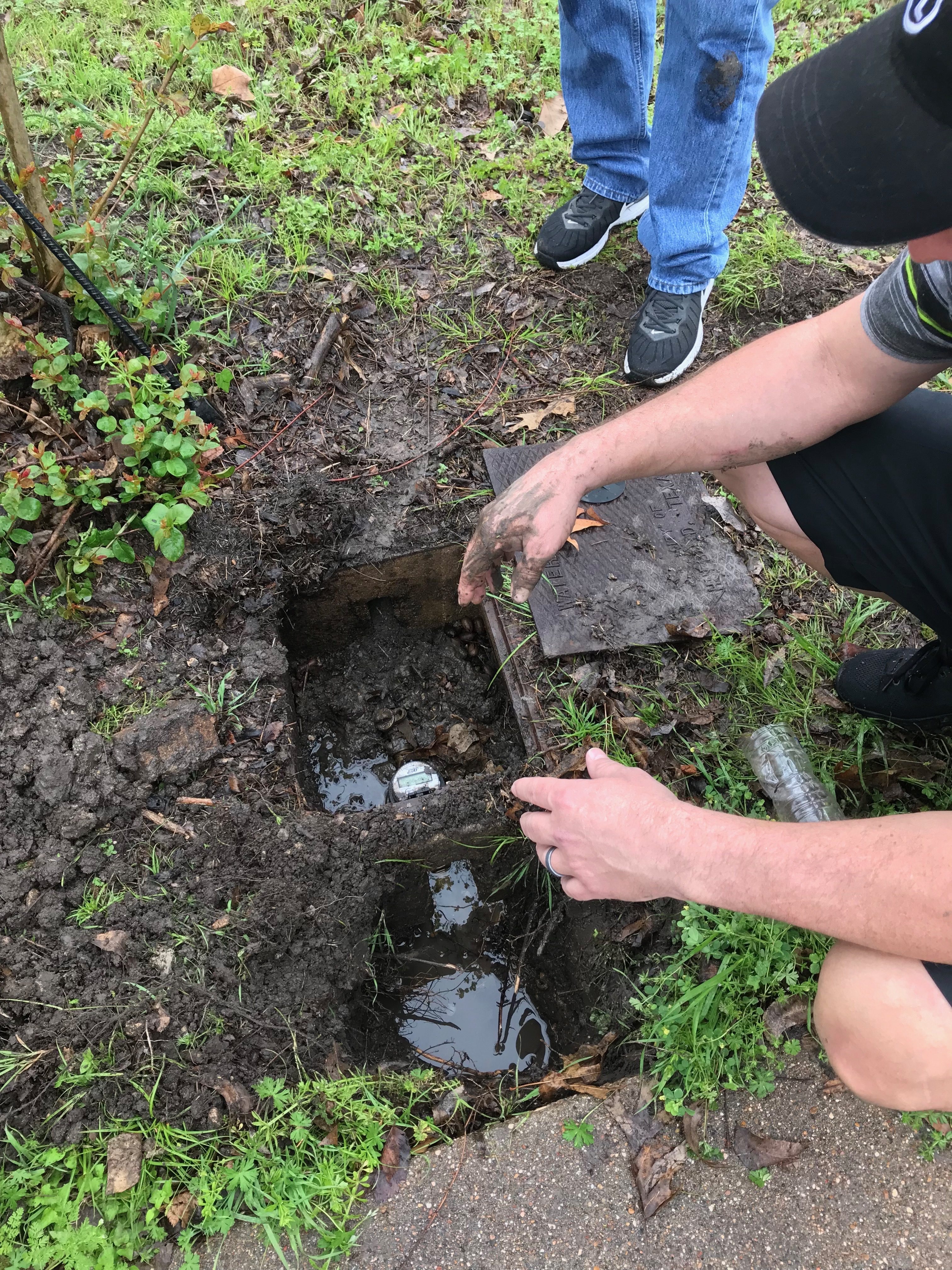 The water company came out and got the water turned on. We were filled with anxiety worrying about leaks everywhere. The first problem was when the water was turned on and no water was coming out any of the faucets inside the house. Our M2 guys jumped in and went to trying to figure out why. Oh yeah, I forgot to mention, it’s raining the entire time this is going on. We’ve got the cut off meter on the side of the house dug out (and it’s filling with water from the rain) so locating the valves was trying.