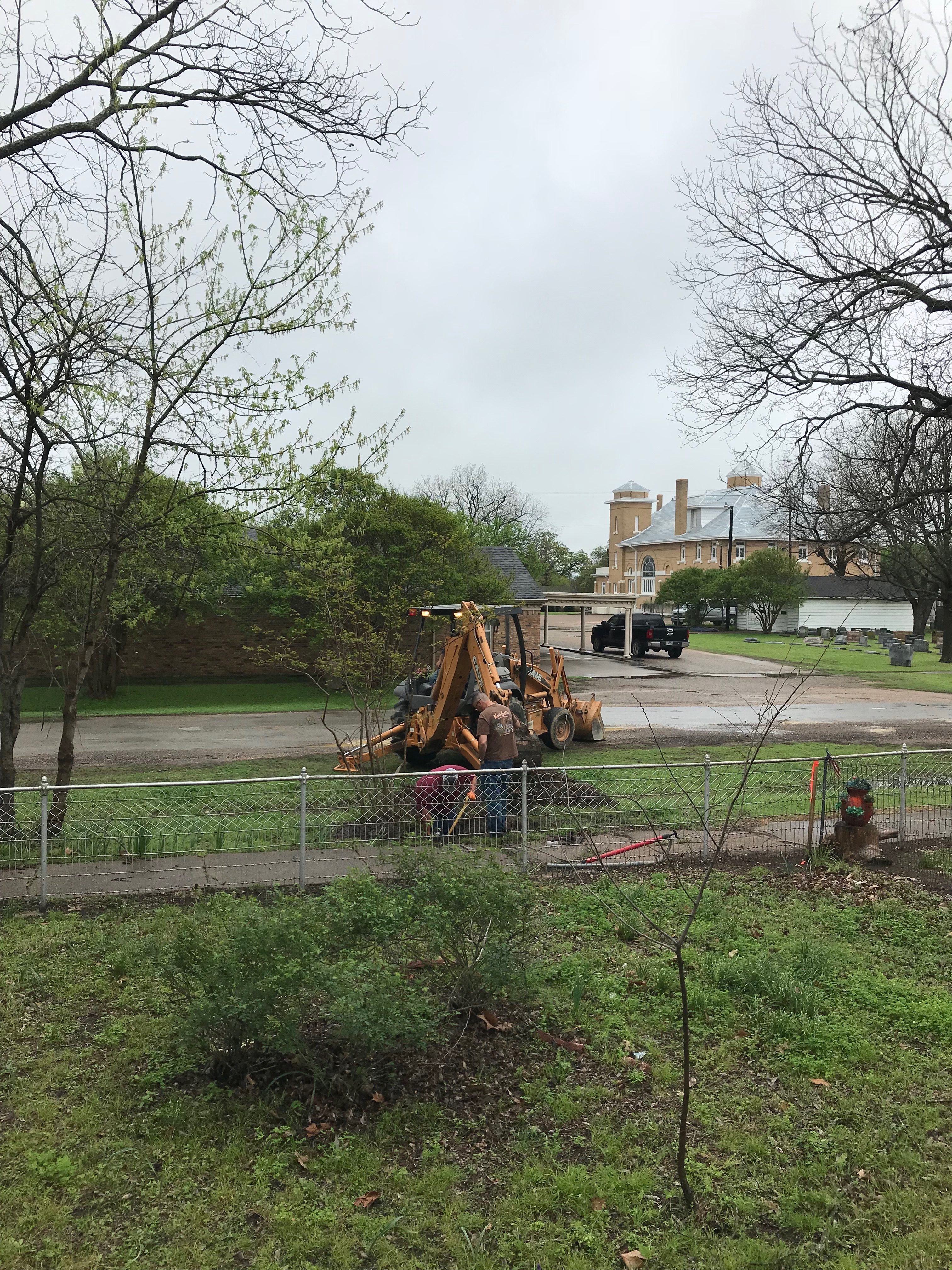 A local plumbing contractor (a wonderful guy) stopped by to lend his expertise (even though he was working on another job). He came over on his lunch hour and figured out that it was the city meter that wasn’t working. YAY! It’s not our responsibility. The water department had guys out lickety split to fix that issue. So this was my hopeful view from the front porch.