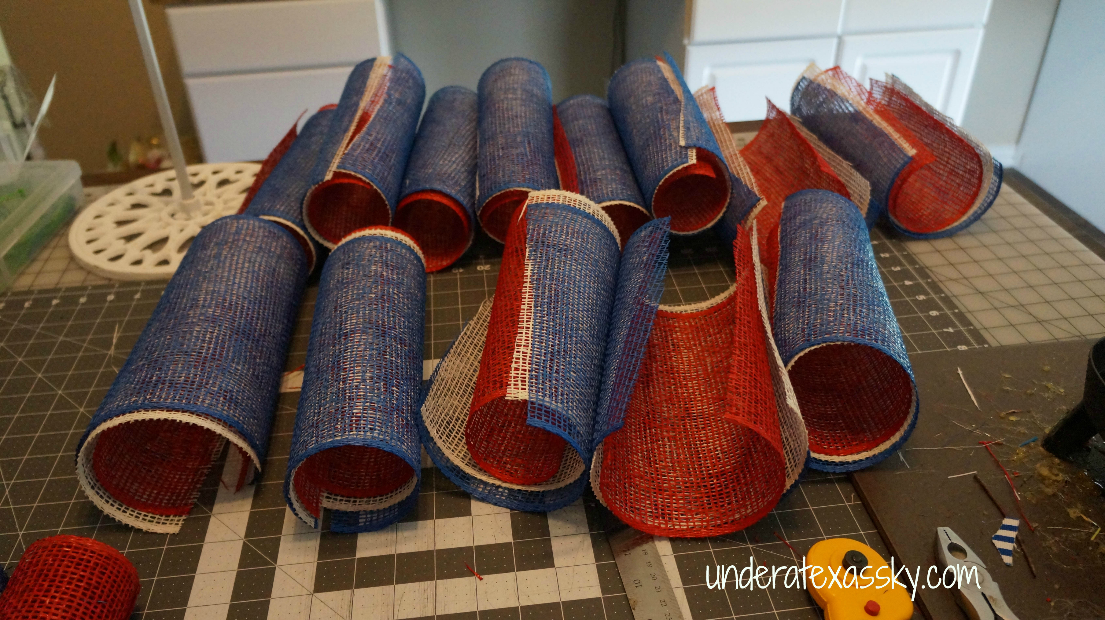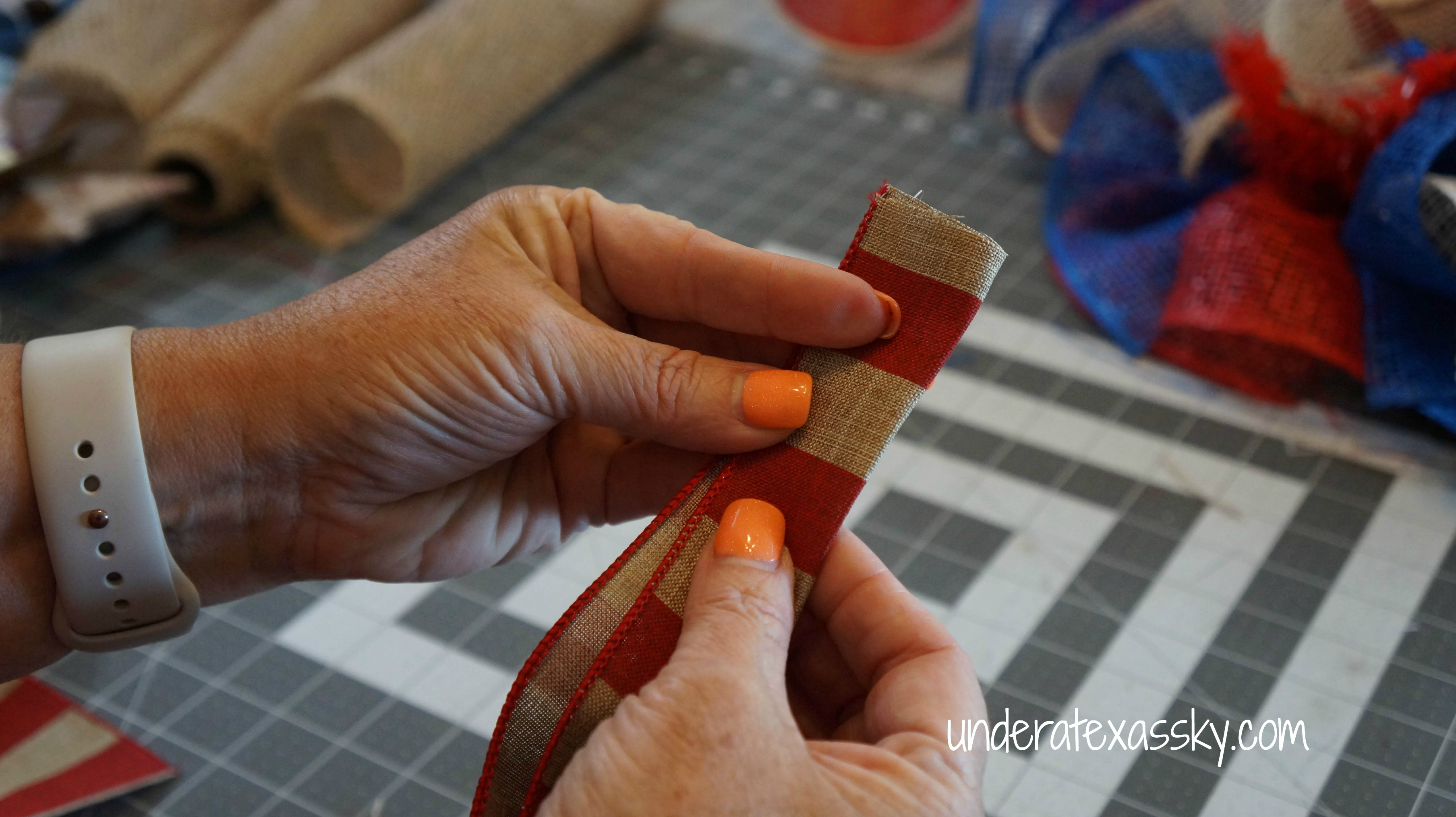 2 rolls of 2 1/2″ ribbon (I used patriotic colors)