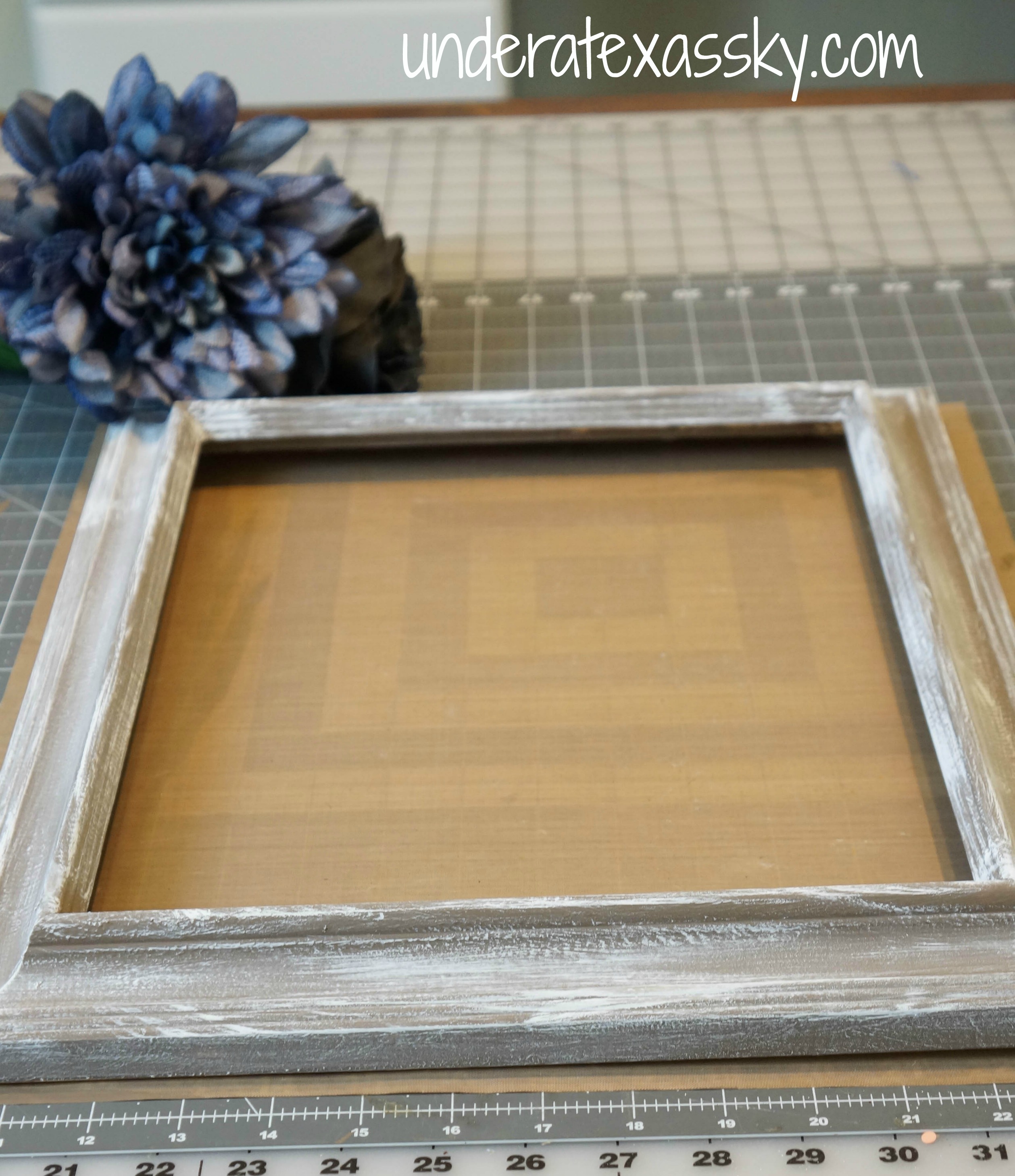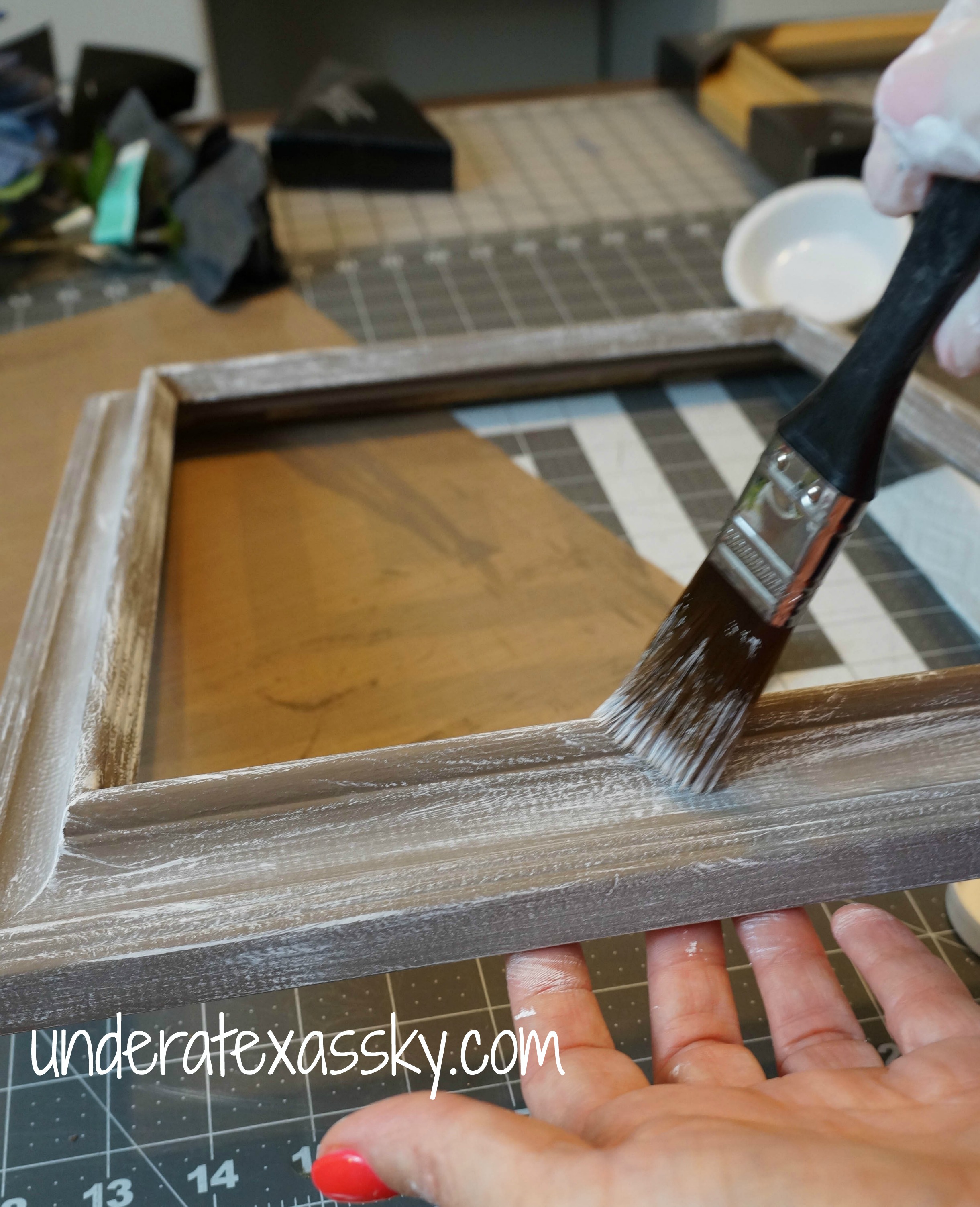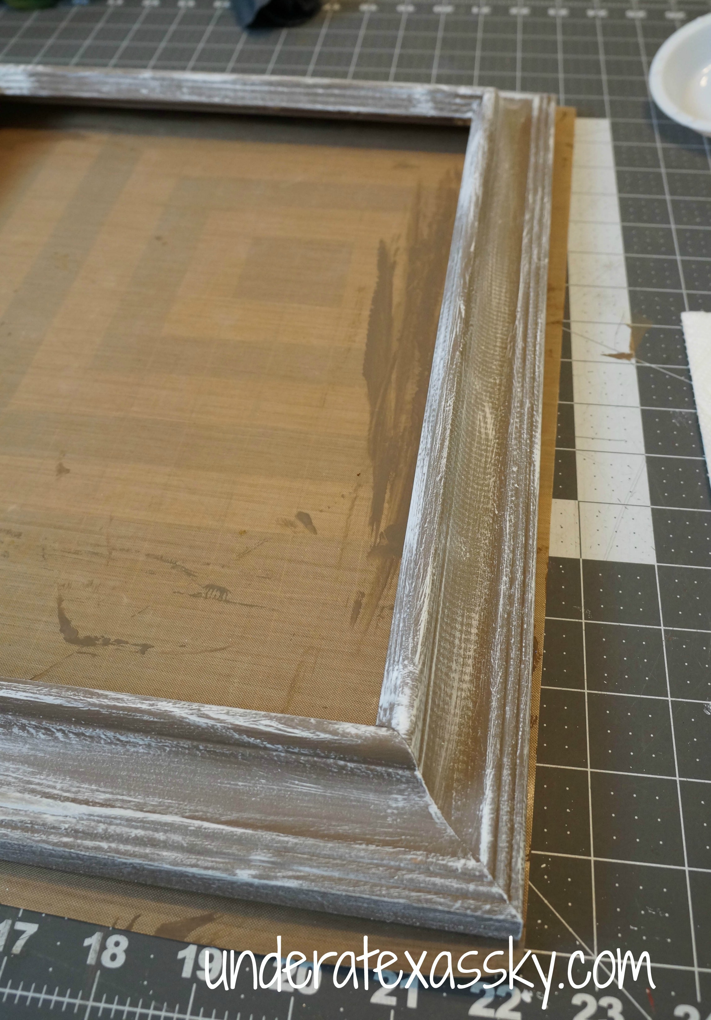 Paint the frame with the base color and allow a couple of hours for it two dry, according to the paint directions.