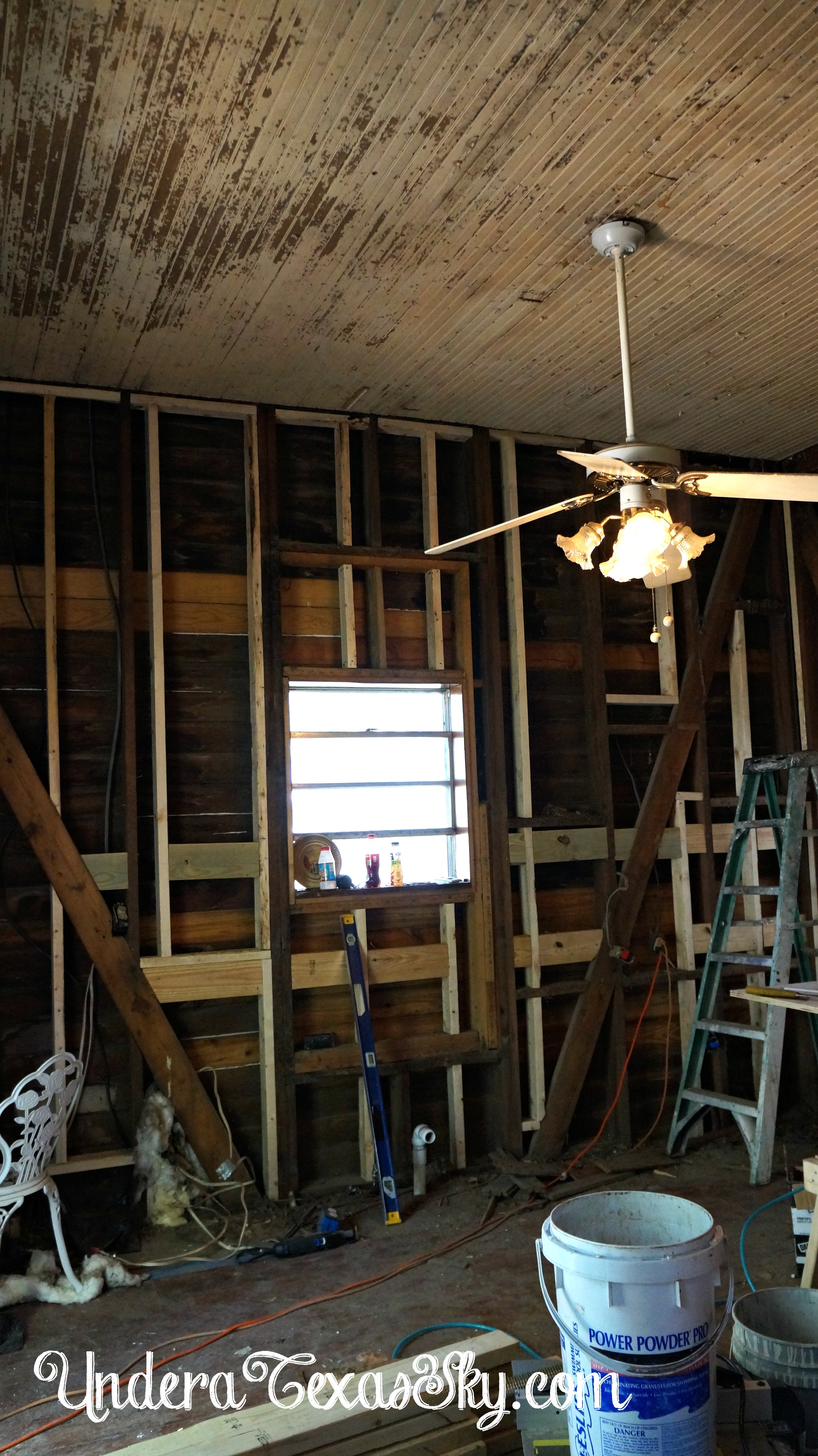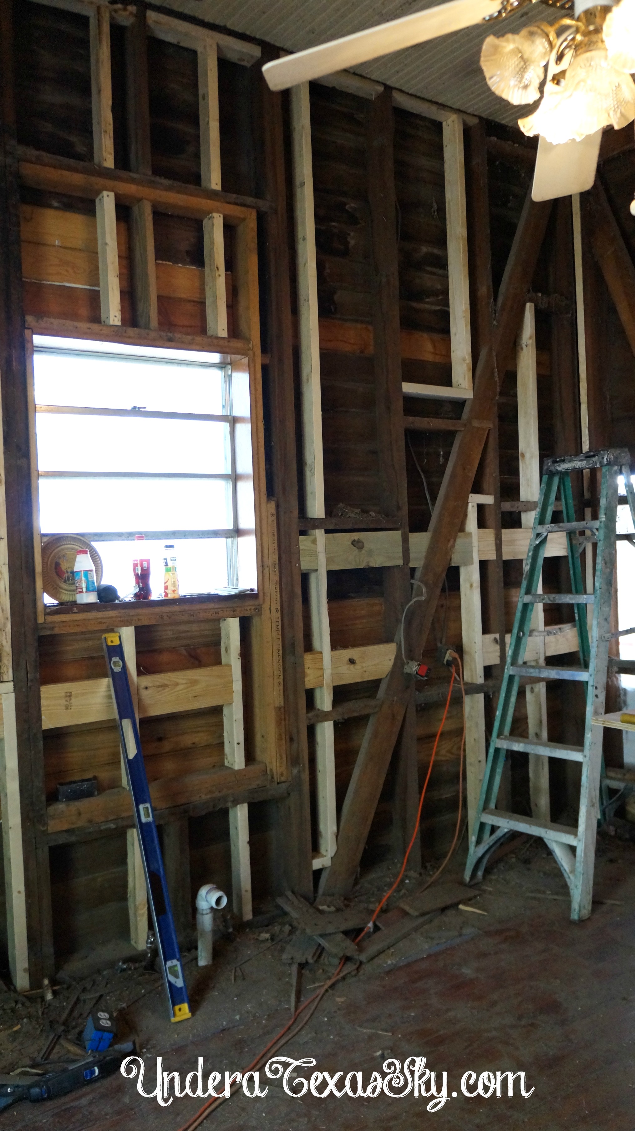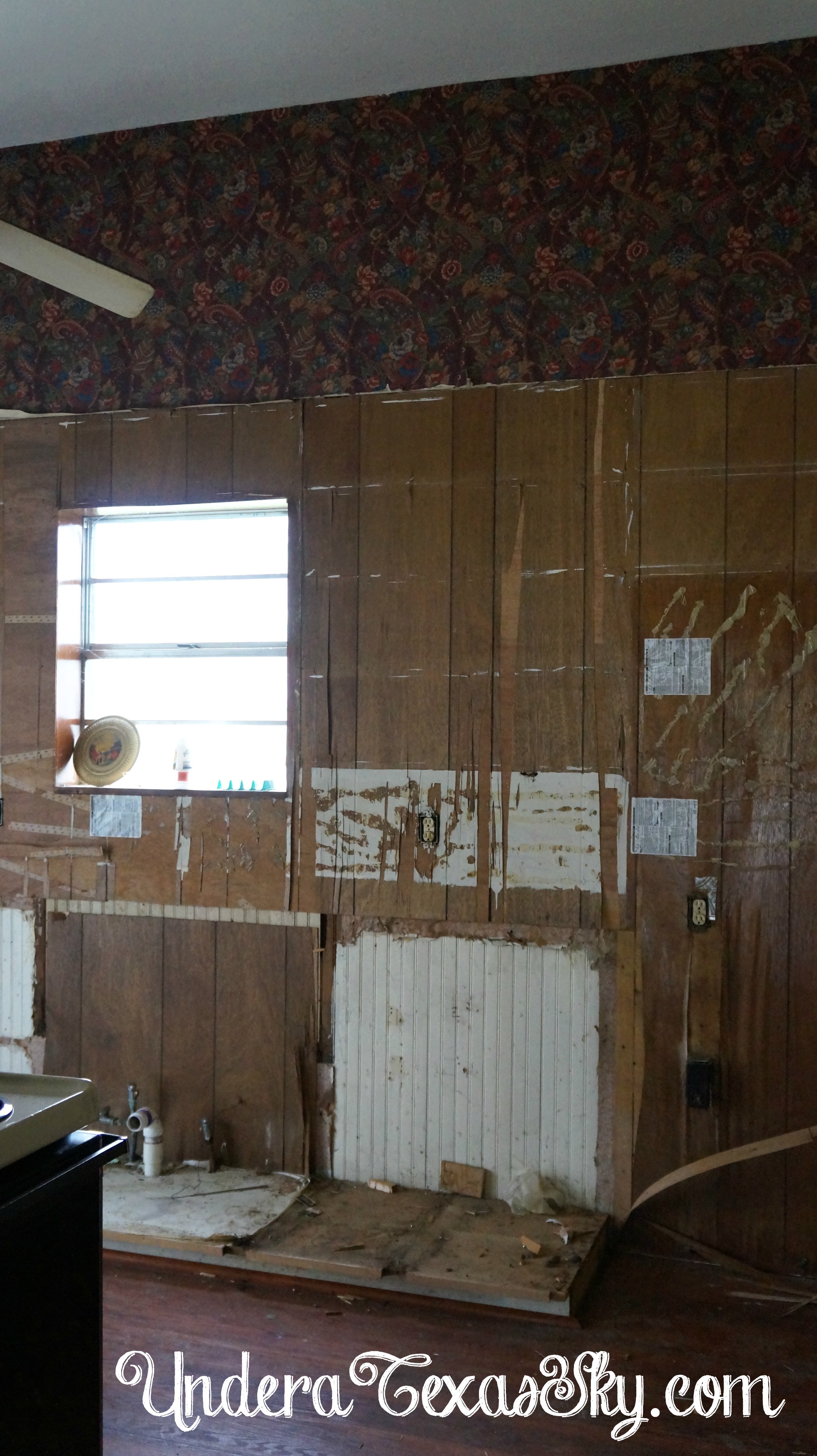 It’s now gone, along with the wallpaper, paneling, and sheetrock!
