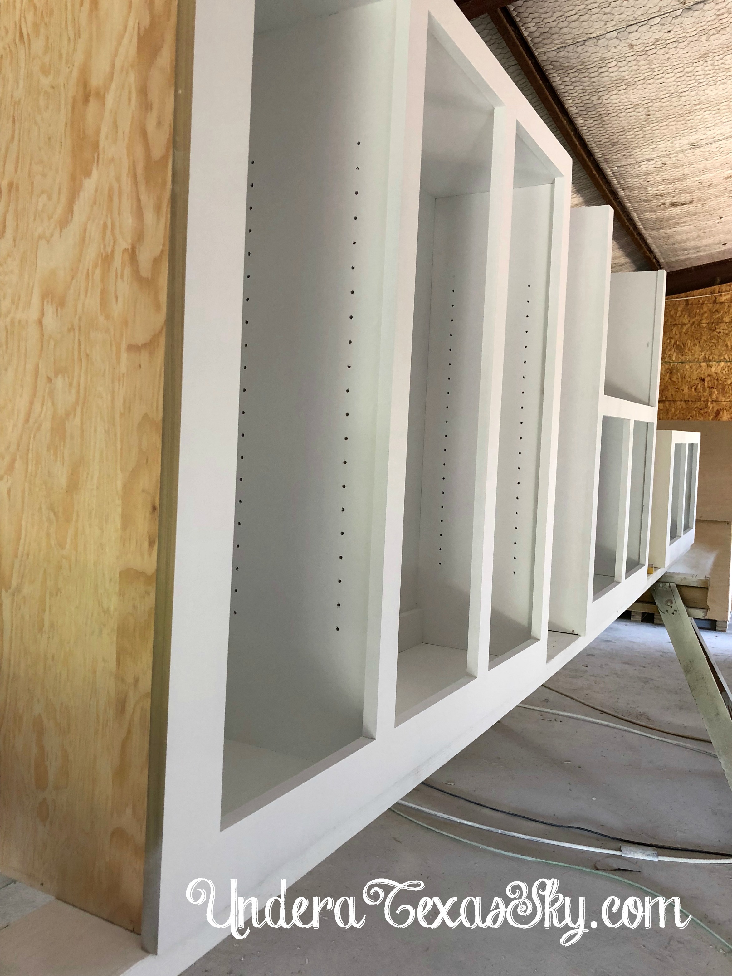 So the cabinets are built and are being painted- now THAT’S fun stuff. They are going to look wonderful! The shaker style cabinets are all wood with some nice detailing. We chose to go with a white painted finish in keeping with the clean and bright look we’re going for.
